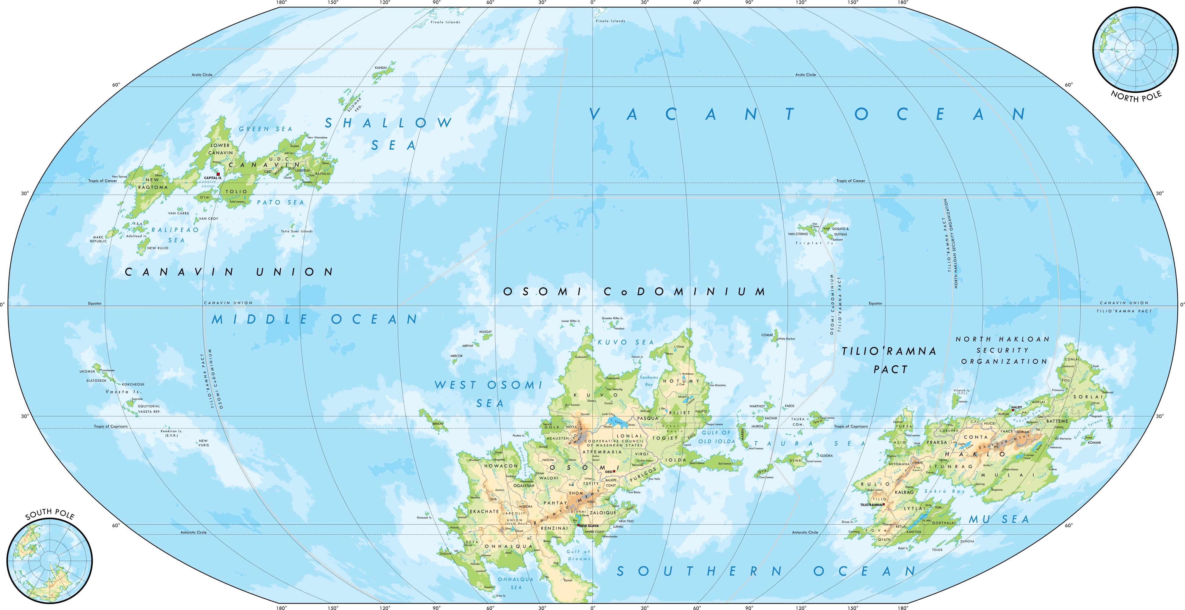 Made up of most of the Haklo continental mass. Considered the second most powerful bloc on the planet, the Tilio'ramna Pact was the most regressive prior to First Contact. Most of its member states practiced a form of indentured servitude or serfdom with around 10-15% of the population being in bondage. Prior to First Contact, many if not most of the Pact members had some form of an emancipation movement, and servile rebellions were not uncommon.